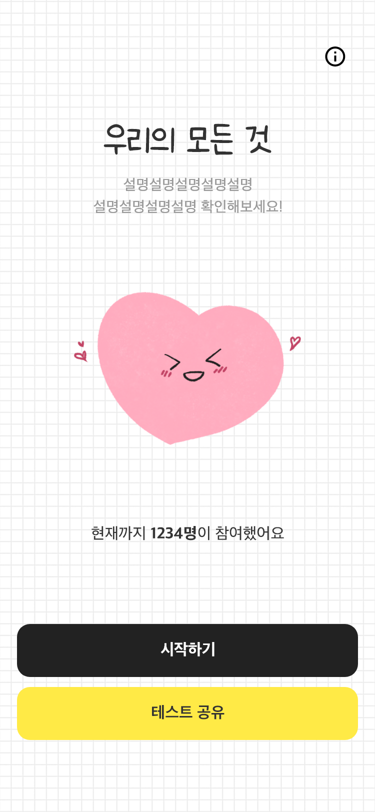 화면 뷰는 총4개로 첫화면 / 내 정보 / 상대 정보 / 결과 화면 으로 구성되어있다. 제플린으로 제작된 화면을 그대로 따라서 구현하려고 노력했다.