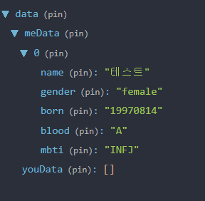- meData, youData์˜ ์ดˆ๊ธฐ๊ฐ’์„ ๋นˆ๋ฐฐ์—ด๋กœ ์ƒ์„ฑํ•ด ์ค€๋‹ค.