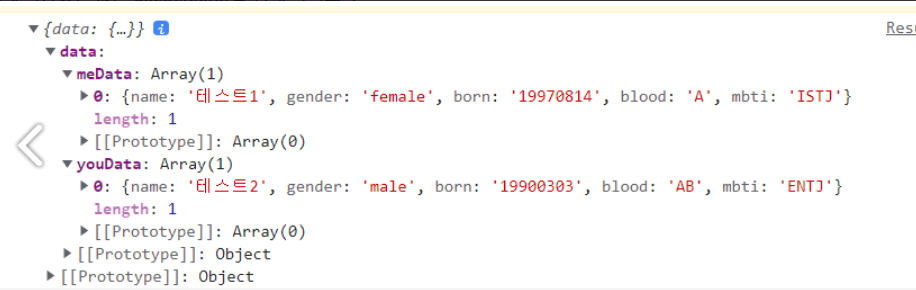 ์ฝ˜์†”์ฐฝ์— ํ•ด๋‹น res ๊ฐ’์„ ๋„์›Œ๋ณด๋ฉด, post๋ฅผ ์„ฑ๊ณตํ•œ ๊ฒƒ์„ ํ™•์ธ ํ•  ์ˆ˜ ์žˆ๋‹ค. ์ด์ œ ์ด ๋ฐ์ดํ„ฐ๋“ค์„ ์›ํ•˜๋Š” ์ž๋ฆฌ์— ๋ฐฐ์น˜ํ•ด์ฃผ๋ฉด ๋œ๋‹ค.