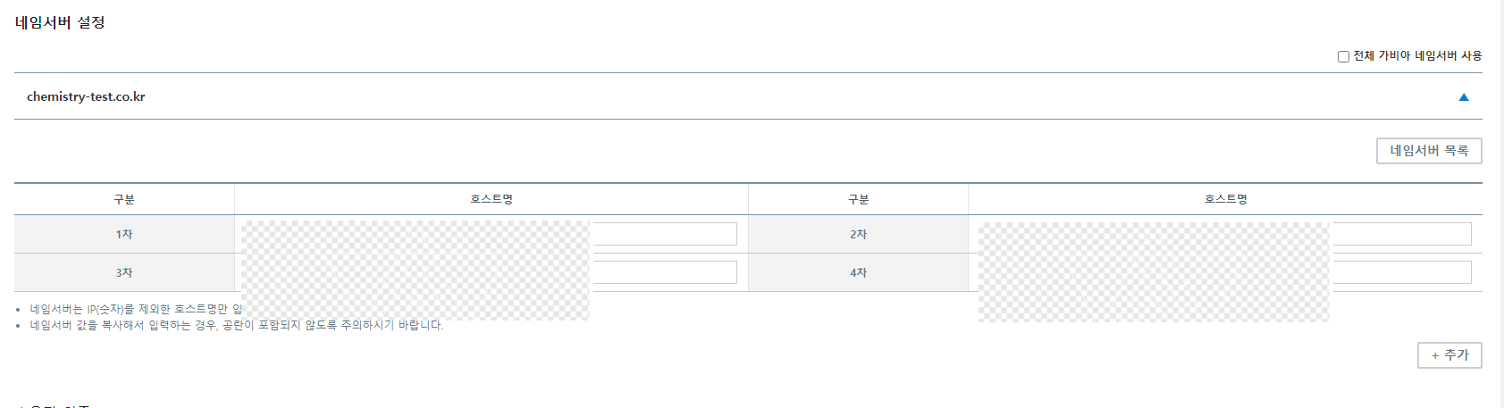 ์๊น Router53์์ ์์ฑํ 4๊ฐ์ ์ฃผ์๋ฅผ ์ฌ๊ธฐ์ ๋ถ์ฌ๋ฃ์ด์ค๋ค. ์ ์ฉ์ ์ํค๊ณ