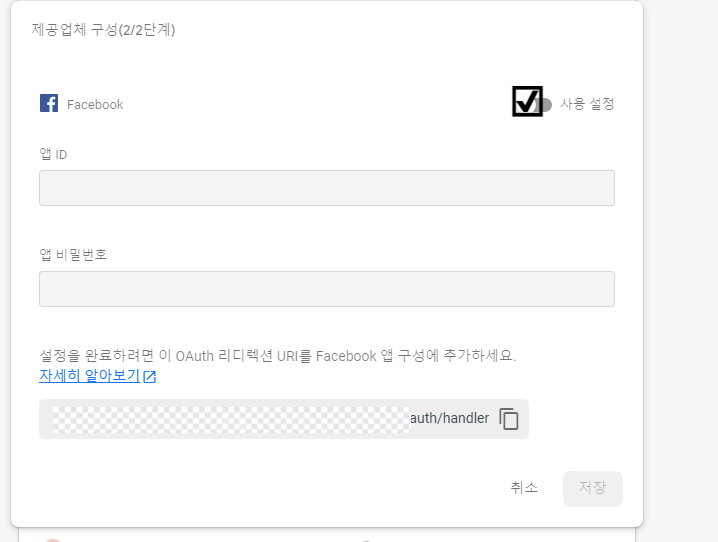 이렇게 해준 뒤 파이어베이스 Authentication 콘솔에서 설정을 해줘야 함.
